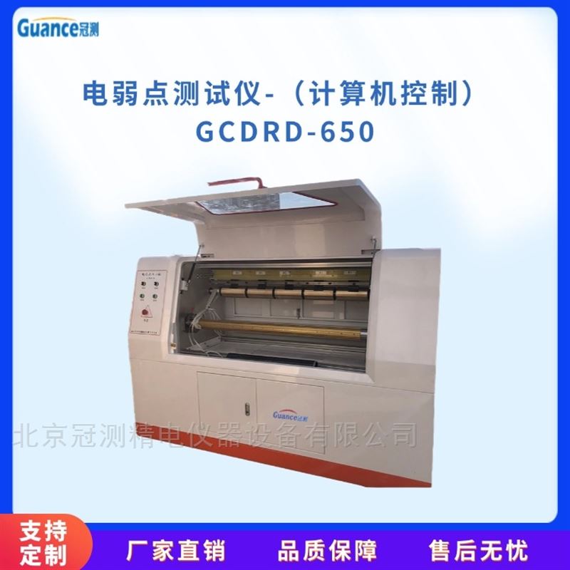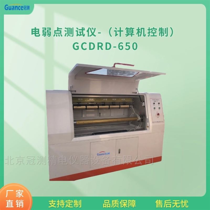 本儀器方式為微機控制,卷膜移動速度可設定,按照設定的升壓速率升壓,達到設定的電壓后,實時記錄當前的電壓值和電流值,并能夠實時記錄當前的擊穿點,試驗結束后自動歸零,自動統計電弱點數、電弱線數,自動計算每平方米的電弱點數。